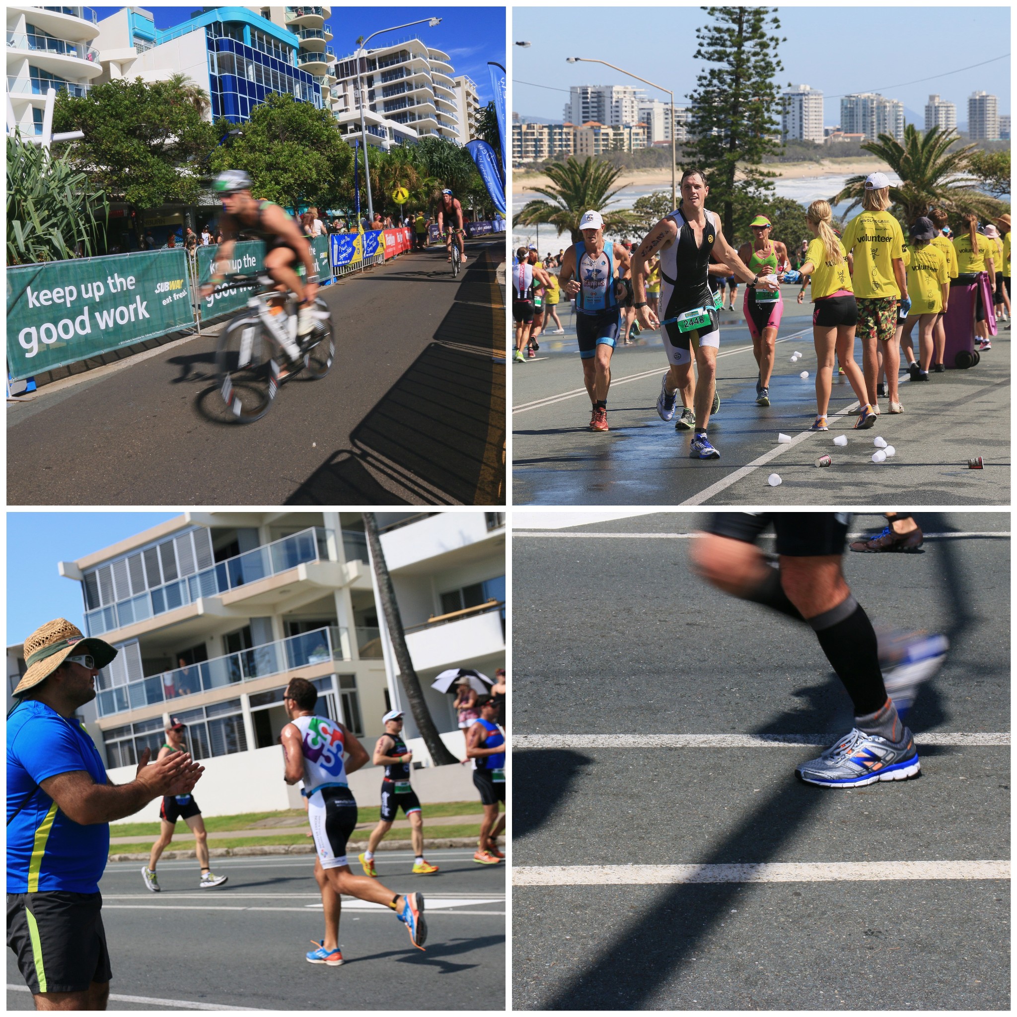 The last thing I would want to do in this weather is run. Swimming would be okay I suppose, if you could cope with the oversized waves and not get dragged under by sharks or stung by jellyfish or hit by a wayward surfboard. Cycling might be fine too, if you can mainly stick to going down the nine hills plunging from Buderim, breeze flowing through Lycra, and refresh with an iced latte afterwards. But running doesn’t seem to come with any benefits. Nonetheless, thousands of people decided to engage in all this and more in the Mooloolaba Triathlon, taking place on a perfect, breezeless thirty degree Sunday.
