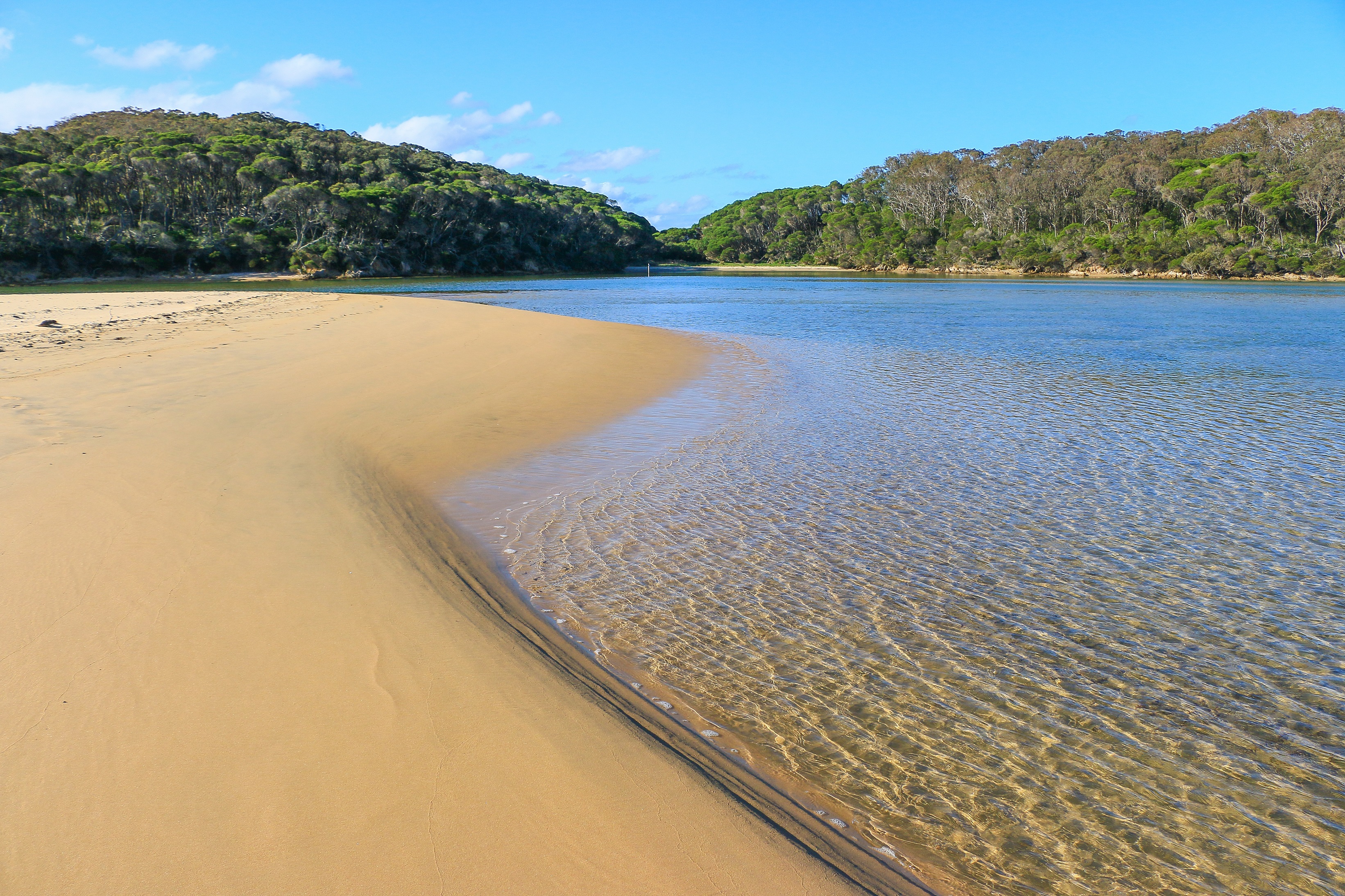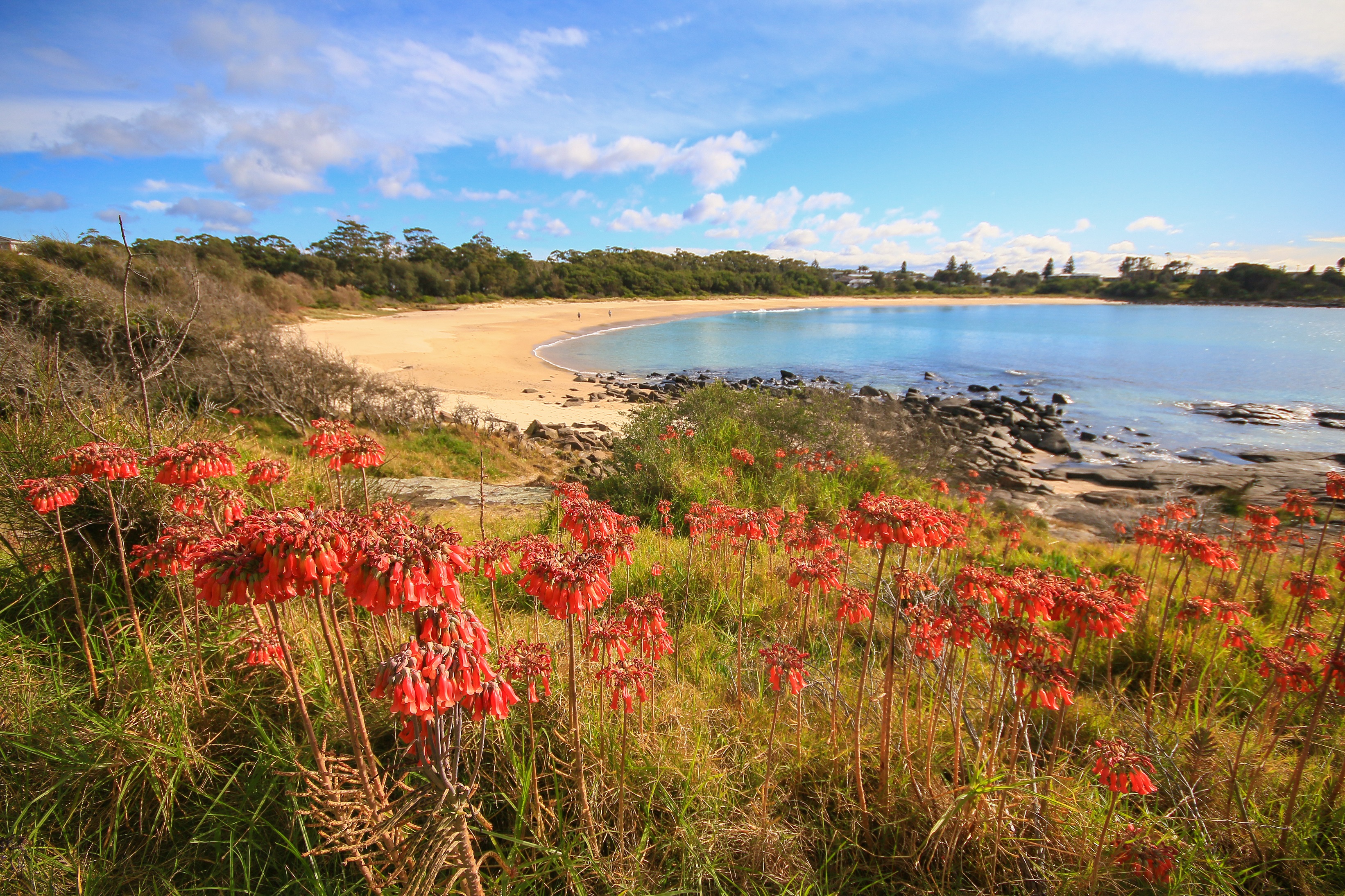 On the topic of hidden paradises, a golf course next to the sea would tick many boxes, especially for English cricketers busily training. Just north of Merimbula, Tura Beach has one, although the sea often remains hidden behind dunes and tea tree and banksia. These hazards are supplemented by protective plovers and swampy ponds and numerous retirees doddering along with their dogs. I never realised the entirety of Tura Beach was effectively a Goodwin retirement village.